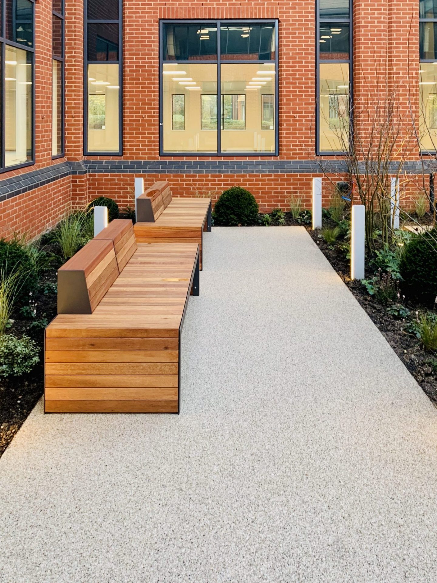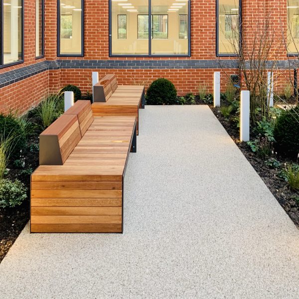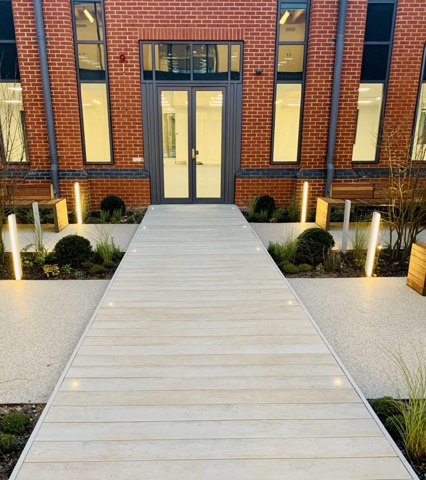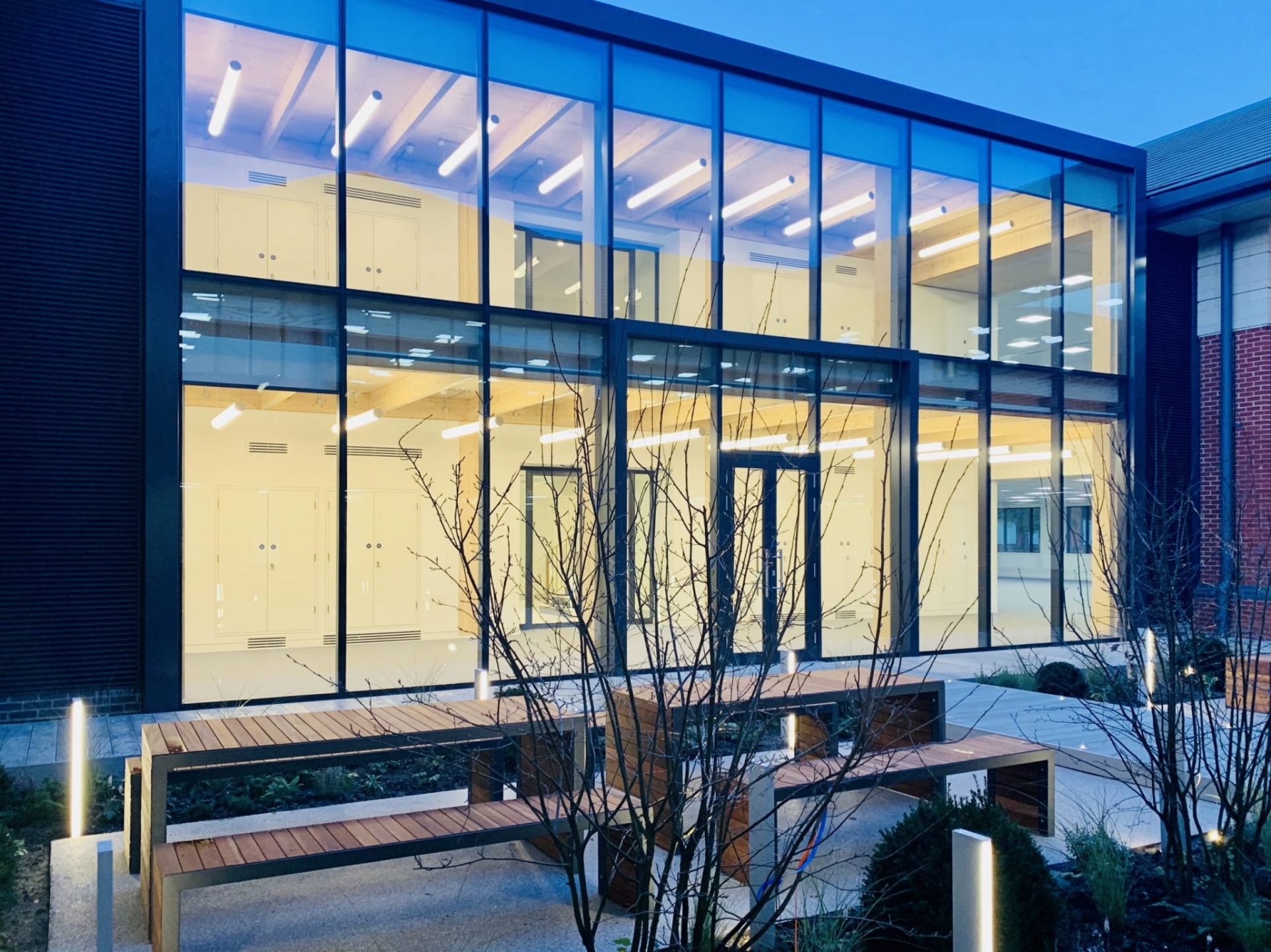 Cat A fit-out of an existing two-storey office space with a central infill extension of structural glazing, feature reception and landscaped courtyard.